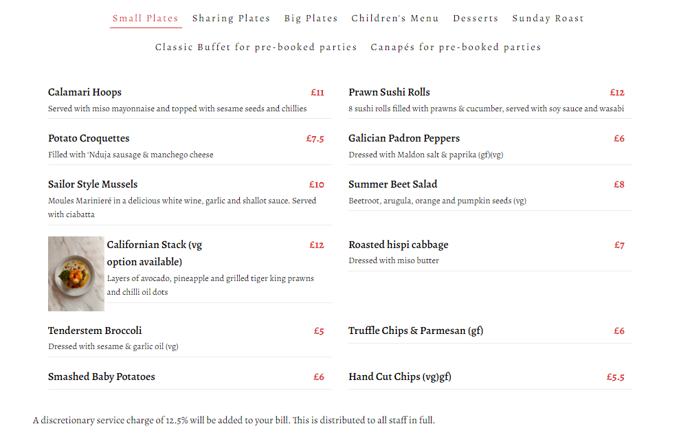 One of the highlights of the menu is the innovative selection of small plates, designed for sharing and bursting with bold flavors. Whether you're a fan of seafood, vegetarian dishes, or indulgent meat options, there's something to please every palate. The dishes are artfully presented, showcasing the chef’s attention to detail and commitment to high-quality ingredients. The seasonal specials are a great addition, ensuring that there’s always something new to try.